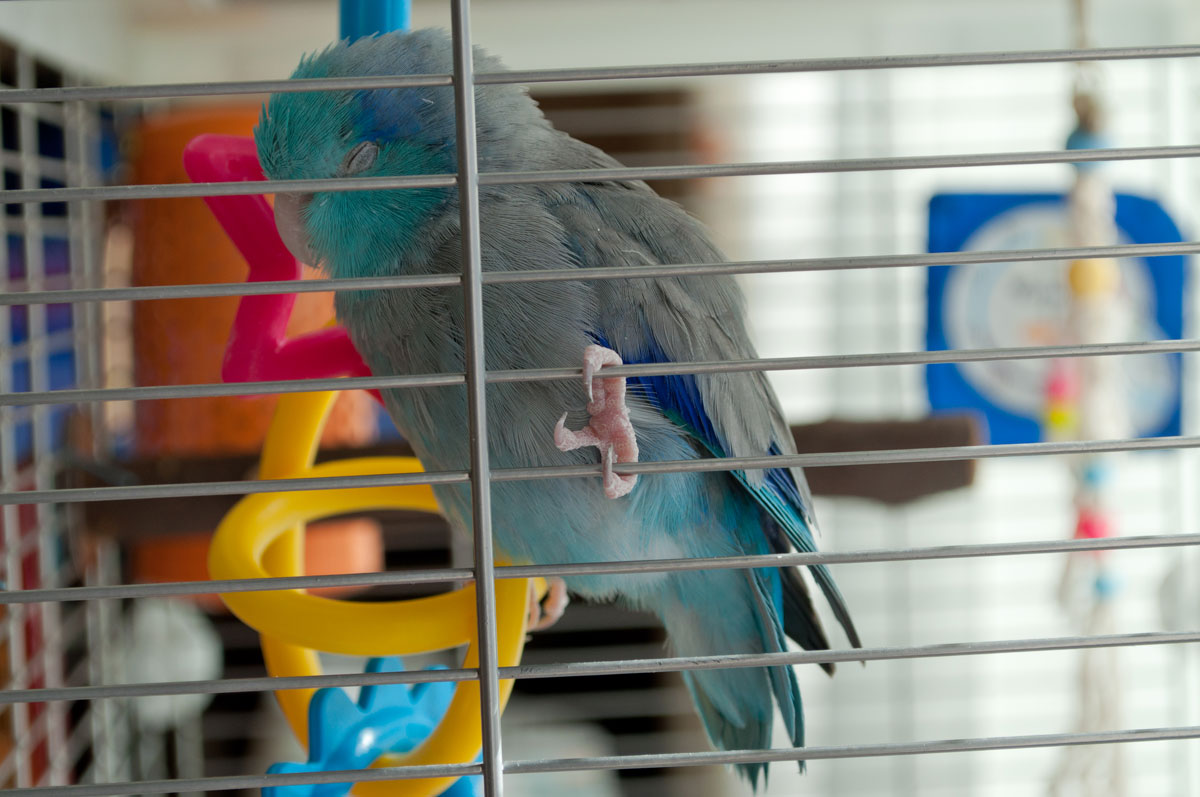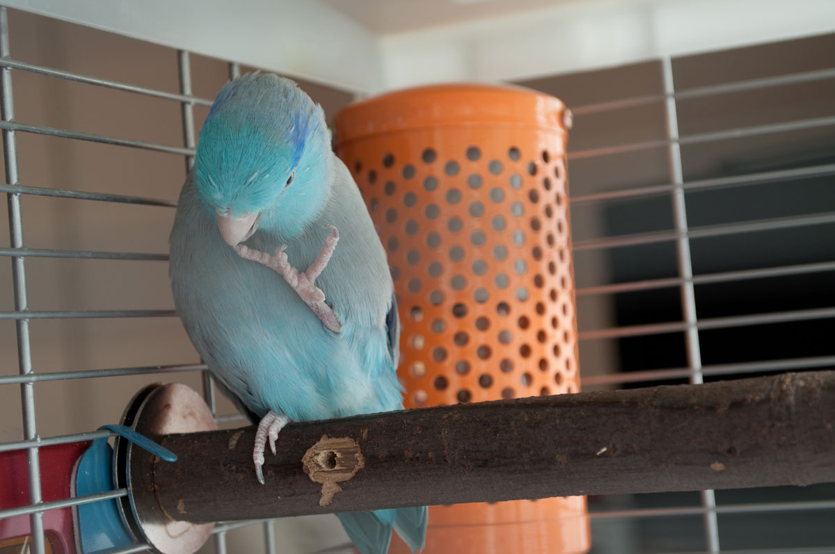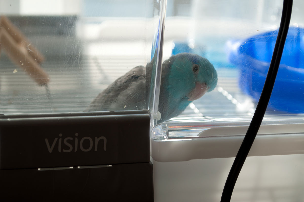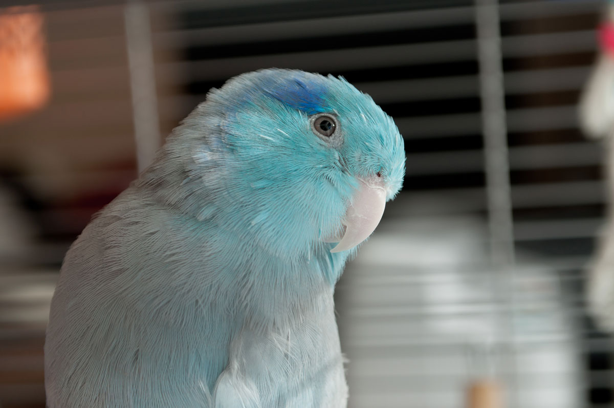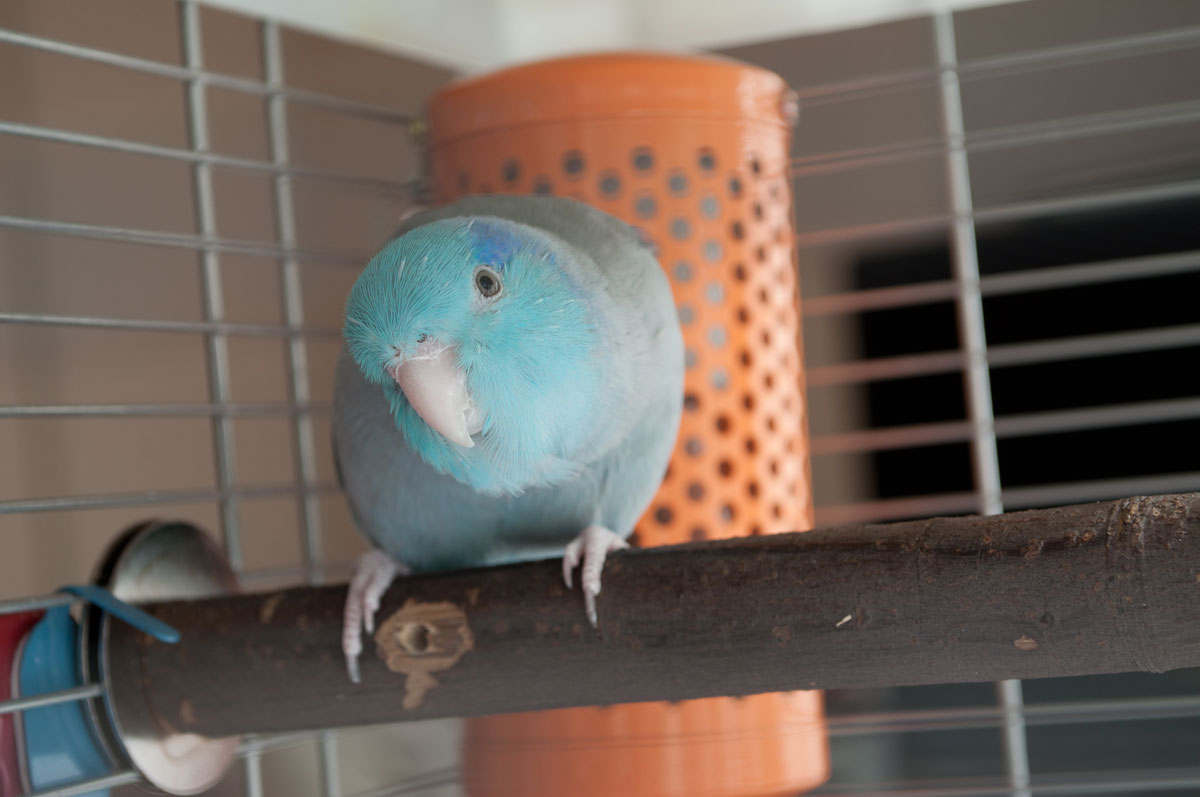 人の気配を感じたのでアピールしにきたマメルリハインコ(ブルー♂)のそらちゃんです。