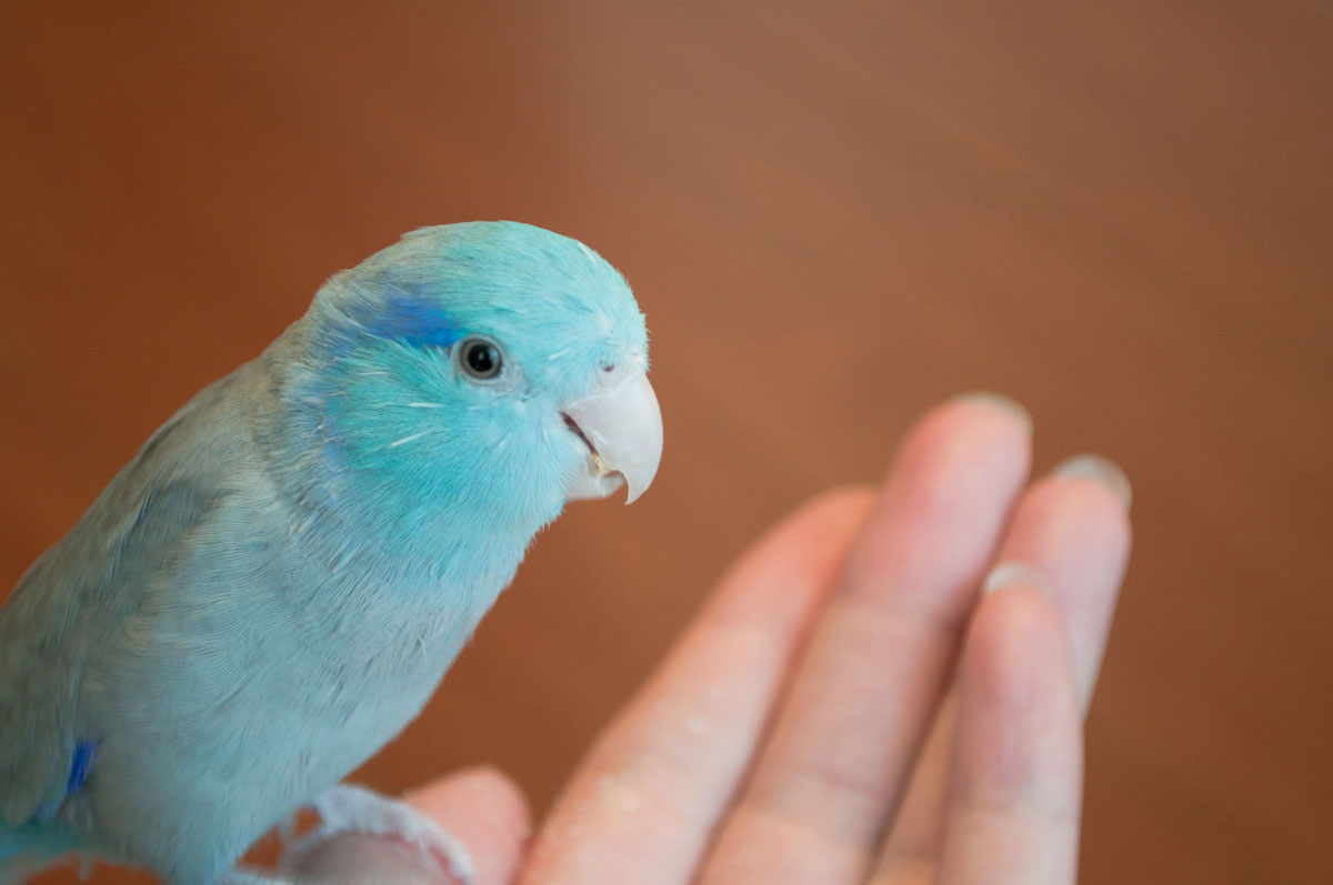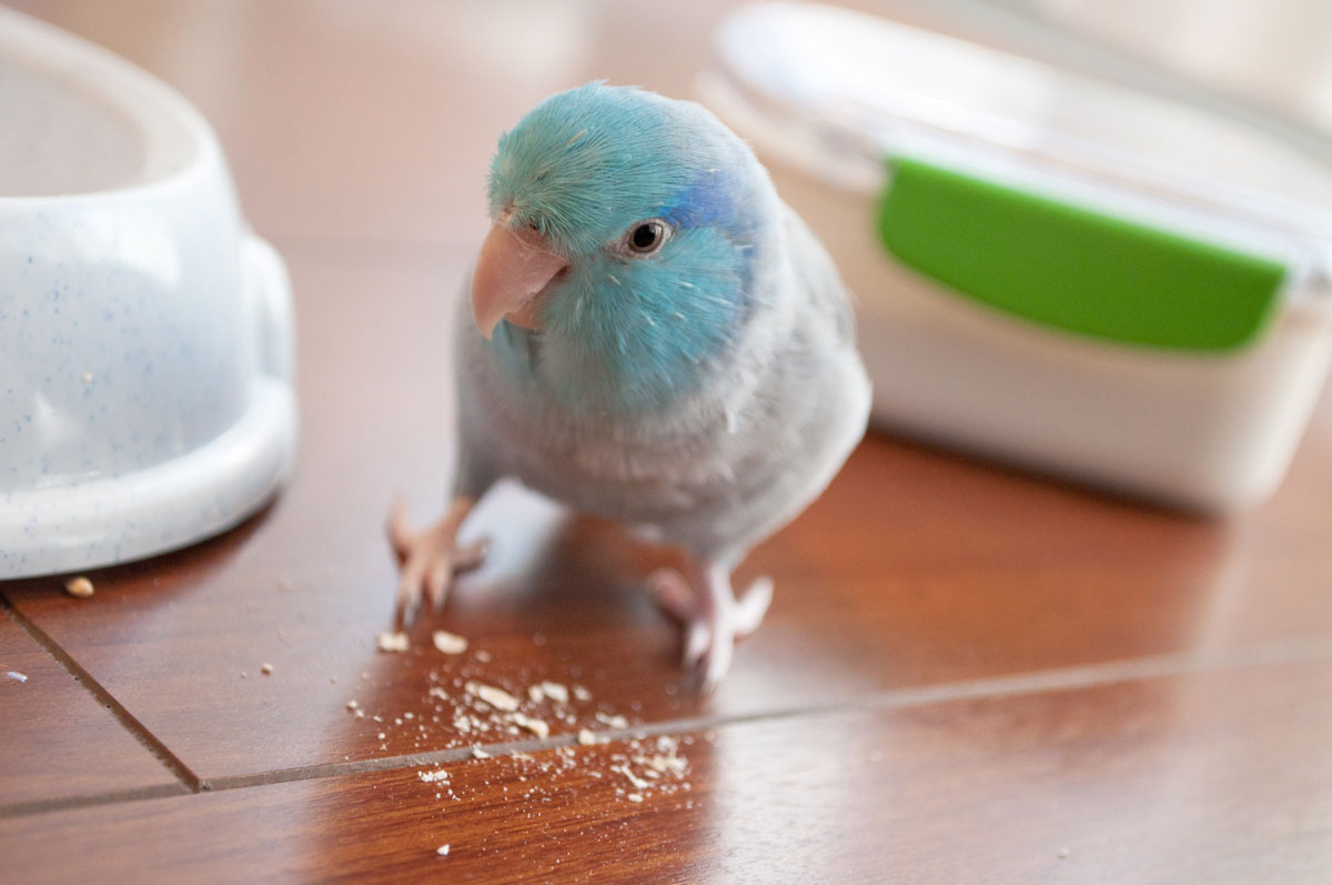 ケージから出られる嬉しさか、飼い主さんと遊べる嬉しさか、おやつがもらえる嬉しさか・・。真相はわかりませんが我が家のマメルリハそらちゃんは元気いっぱいに飛び出してきます。そしておやつタイム・・・・