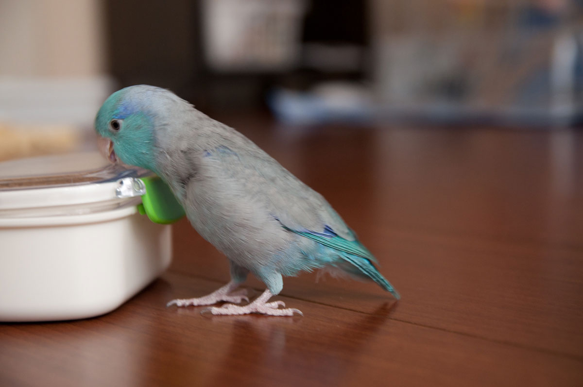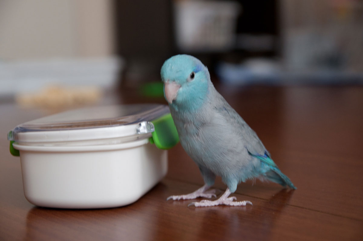 「いただきます♪」といきたいところですが、透明のフタがかかっているのでとれません。。そらちゃん、何度かコツコツつっついてようやくフタがあることに気付いたみたいです。